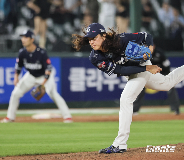 롯데 자이언츠 투수 진승현은 8일 KT 위즈와의 경기에 6회 마운드에 올라 KT 타자 3명을 깔끔하게 아웃으로 처리하며 제 역할을 해냈다. 롯데 자이언츠 제공