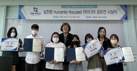 대동대학교 교육혁신원은 지난 5월 2023년 전문대학 혁신지원 사업의 일환으로 ‘실천형 Humanity-focused 교양 교과목 아이디어 공모전’을 개최하였고 이번 6월 7일, 시상식을 진행하였다고 밝혔다.