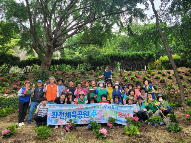 이번 수국정원 조성은 2023년 주민참여예산 사업으로 좌천체육공원 내 무단경작지를 지역주민 및 각급 단체원 등 50여 명이 정비하고 수국을 심어 아름다운 수국정원으로 재탄생시켰다.