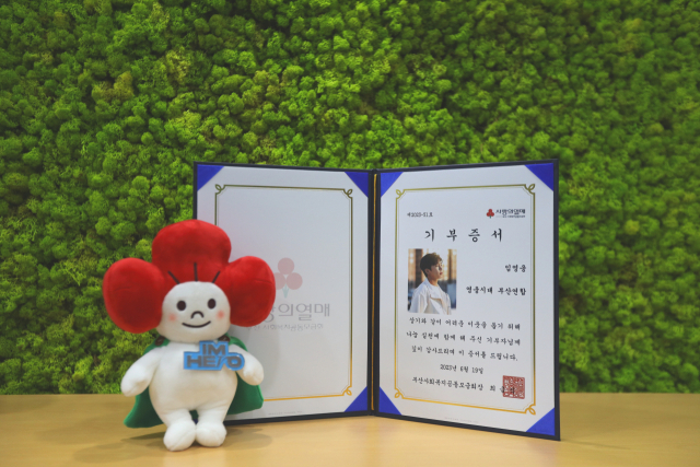 아티스트 임영웅의 선한 영향력을 이어가는 팬덤 ‘영웅시대 부산연합’은 지난 19일 임영웅의 생일(6월 16일)을 맞아 부산사회복지공동모금회(회장 최금식, 부산사랑의열매)에 성금 1420만 원을 전달하며 나눔리더스클럽 26호로 가입했다.
