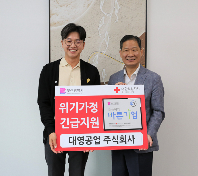 대영공업(주)(대표 김기태)은 23일 대한적십자사 부산지사(회장 서정의) ‘씀씀이가 바른기업’ 정기후원 캠페인에 참여해 지역 사회를 위한 나눔을 실천하기로 약속했다.