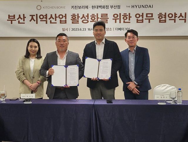 현대백화점 부산점 (점장 임한오)과 (주)키친 보리에 (대표 박지만)는 지난 23일 부산 해운대구 더베이 101에서 부산 지역 산업 활성화를 위한 업무 협약을 체결했다.