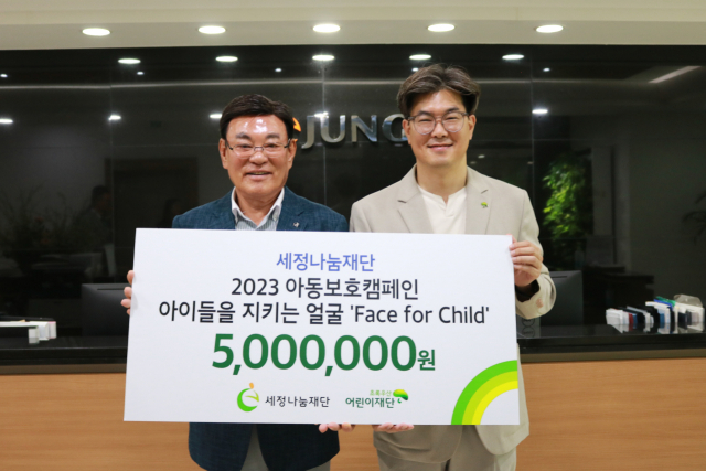 세정나눔재단(이사장 박순호)은 지난 16일 부산의 범죄 피해 위기 아동을 지원하는 캠페인 ‘Face for Child' 후원금으로 500만 원을 초록우산 어린이재단(부산지역본부장 노희헌)에 전달했다.