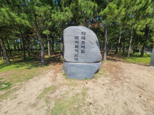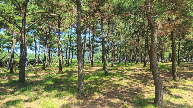 다대포해변공원에는 유난히 소나무들이 많다. 그래서 사계절 푸름을 잃지 않는다. 소나무 아래는 돗자리를 깔고 시원한 바람을 맞으며 소풍을 즐기는 시민들이 많다.
