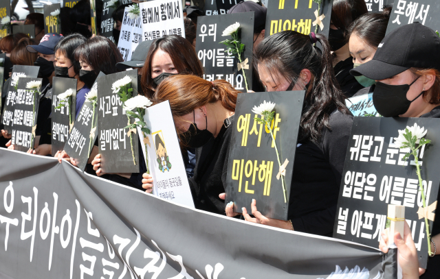 등굣길 참사 사고 와 관련 부산 영도구 청동초 학부모들이 영도구청 앞에서 안전한 통학로 조성을 촉구하며 황예서 양 추모집회를 열고 있다. 부산일보 DB