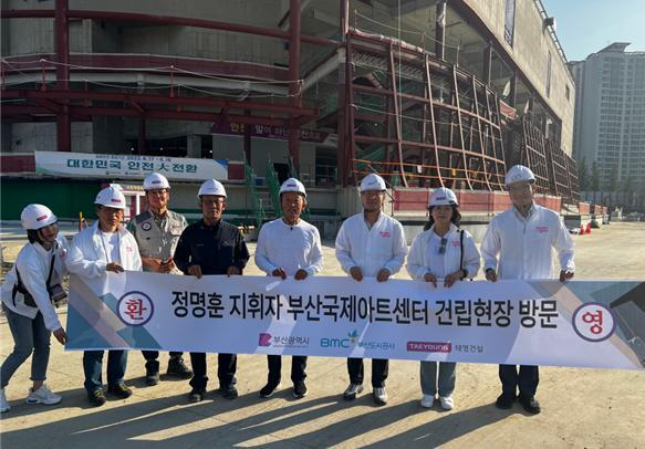 지난 3일 부산국제아트센터 건립공사 현장을 방문한 정명훈 예술감독. 부산도시공사 제공
