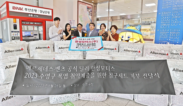 한성모터스(대표 배규환)는 최근 저소득 취약계층을 위해 부산 수영구청(구청장 강성태)에 여름침구 100세트를 기탁했다.
