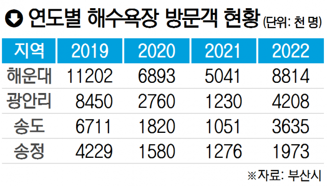 4일 〈부산일보〉 취재를 종합하면, 지난 1일 부산 7대 해수욕장이 개장한 후 주말에 가장 많은 방문객이 찾은 곳은 수영구 광안리해수욕장으로 나타났다. 광안리해수욕장에는 1일 10만 9177명, 2일 8만 2558명이 방문해 이틀간 20만 명 가까운 인파가 몰렸다. 해운대구 해운대해수욕장은 그 뒤를 이었다. 해운대해수욕장에는 1일 5만 5620명, 2일 5만 1340명이 찾아 주말 방문객 10만 6960명을 기록했다.