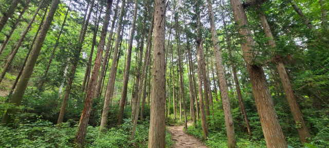 삼청교를 건너면, 돌 무더기에 길쭉하게 하늘로 뻗어 있는 고목이 눈에 들어온다. ‘고향수’로, 보조국사 지눌스님이 짚고 다녔던 지팡이라는 전설이 전해진다. 수많은 전란과 화재에도 불에 타지 않고 오늘날까지 전해진다는 게 놀랍다. 일주문을 지나 경내를 빠져 나오면 편백나무 숲이 반긴다. 숲 사이 벤치에 앉아 삼림욕을 즐기며 잠깐의 호사를 부려 본다.