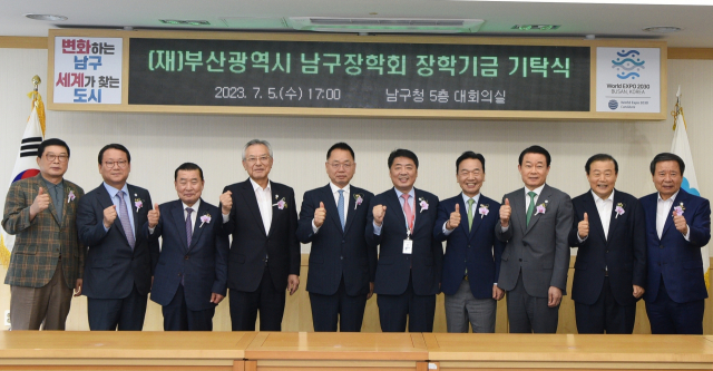 재단법인 부산시 남구장학회(이사장 황의순)는 지난 5일 남구청(구청장 오은택) 5층 대회의실에서 장학기금 기탁식을 개최했다.