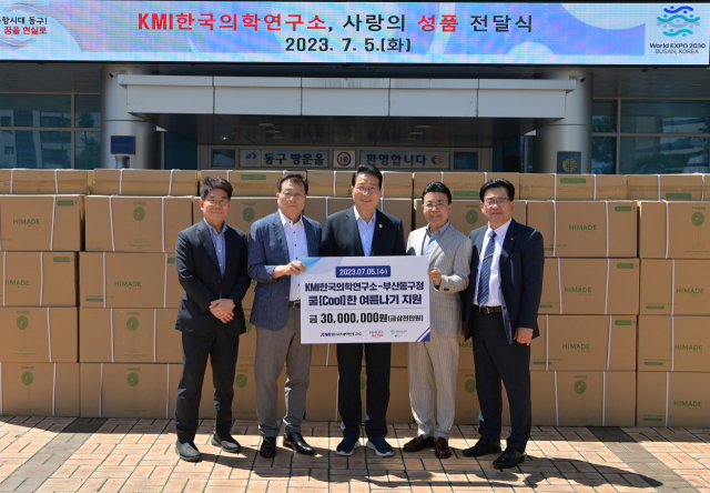 KMI한국의학연구소(명예이사장 김순이·사회공헌위원장)는 지난 5일 부산 동구 폭염 취약계층의 쿨한 여름나기 지원을 위해 사회 공헌 사업비 3000만 원으로 써쿨레이터형 선풍기 319대를 구입해 부산 동구청(구청장 김진홍)에 기탁했다.