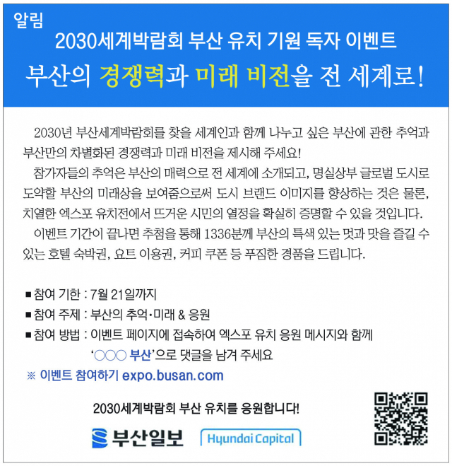 [알림] 2030세계박람회 부산 유치 기원 독자 이벤트…부산의 경쟁력과 미래 비전을 전 세계로!