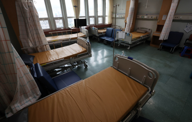 보건의료노조 총파업을 하루 앞둔 12일 오후 부산 서구 부산대학교병원 입원실이 비어 있다. 부산대병원은 노조 총파업에 대비해 중증환자와 고위험 산모 등을 제외한 입원환자를 조기 퇴원시키거나 협력병원으로 전원시켰다. 정종회 기자 jjh@