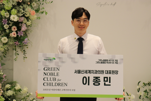 초록우산 어린이재단(부산지역본부장 노희헌)은 서울신세계치과 이종민 대표원장이 초록우산 어린이재단 고액기부자 모임인 그린노블클럽에 가입했다고 지난 15일 밝혔다.