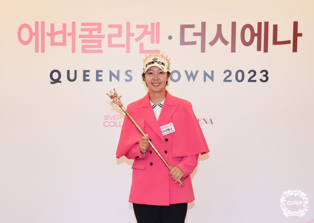 16일 제주시 더시에나 컨트리클럽에서 끝난 KLPGA 투어 '에버콜라겐·더시에나 퀸즈크라운' 대회에서 시즌 두 번째 우승을 차지한 박지영이 왕관을 쓰고 기념촬영을 하고 있다. KLPGA 제공