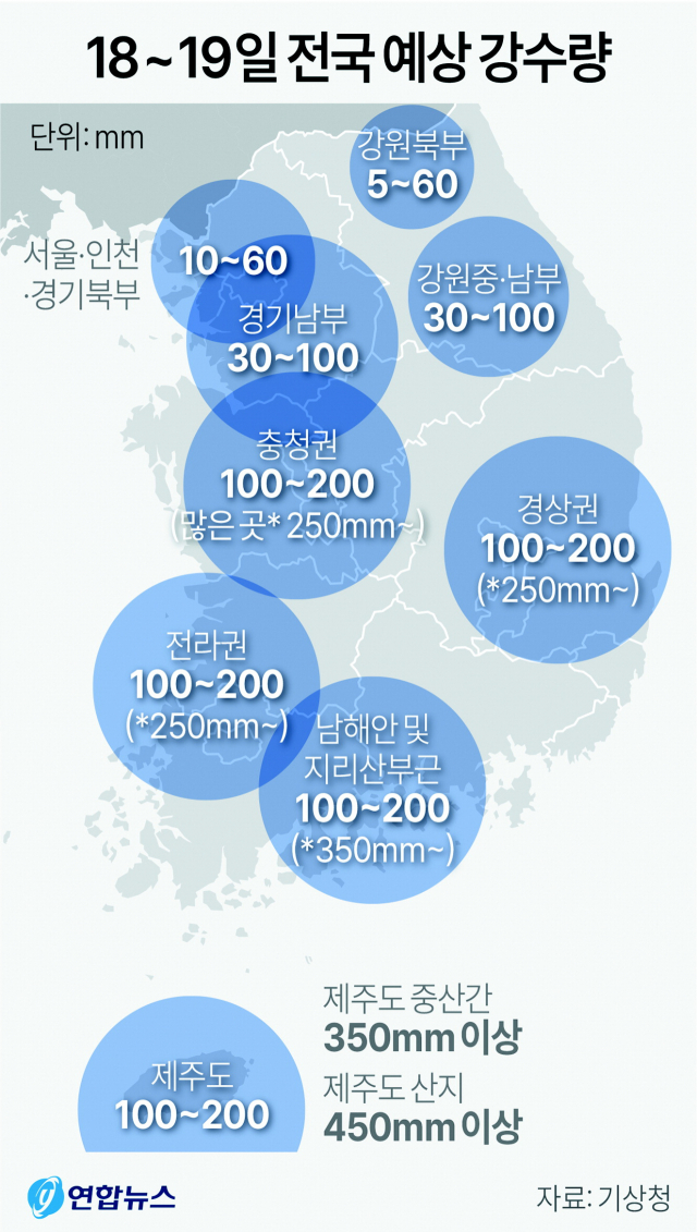한편 행정안전부에 따르면 18일 오후 5시 기준 폭우로 인한 사망자는 총 44명(경북 22명, 충북 17명, 충남 4명, 세종시 1명)으로 늘었다. 경북 예천군 산사태로 인한 실종자 수색 작업에서 이날 오후 실종자 3명이 숨진 채 발견됐다. 전국 실종자는 총 6명이다. 구조 당국은 부산 학장천에서 휩쓸린 60대 1명과 예천군 산사태 실종자 5명의 수색 작업을 이어가고 있다.