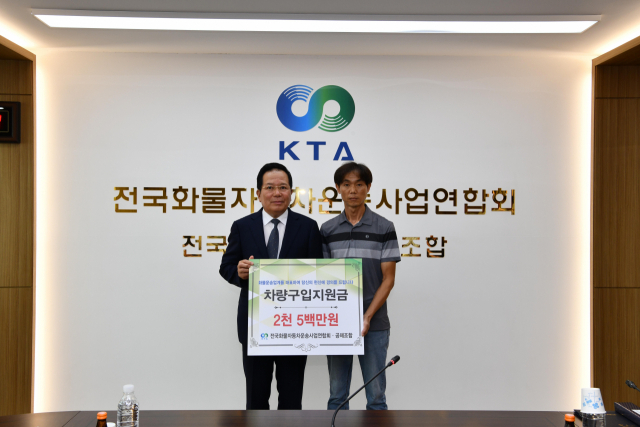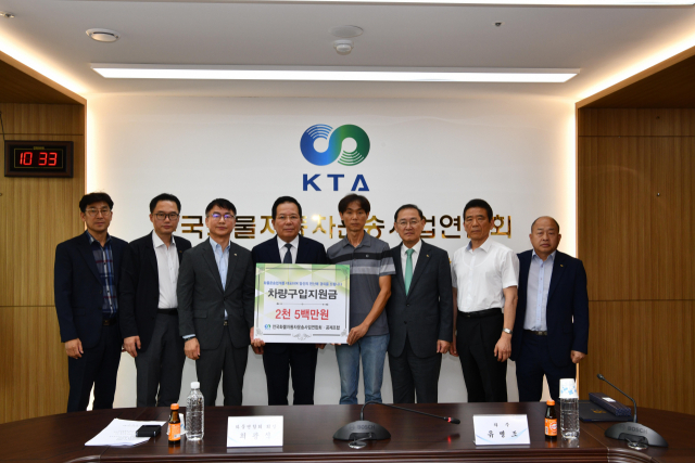 전국화물자동차운송사업연합회(회장 최광식)는 지난 19일 서울 화련회관 11층 대회의실에서 충북 청주시 오송 지하차도 침수 당시 물에 빠진 시민 3명을 구한 화물차 운전자 유병조 씨에 대한 포상으로 감사장과 차량 구입 지원금 2500만 원을 전달했다.