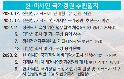 거제시도 발끈했다. 시는 공식 보도자료를 통해 “현재 추진 과정에 있는 사업을 일부에서 성급하게 ‘유치 확정’이라 언급해 시민들에게 불필요한 오해를 불러왔다”고 반박했다. 그러면서 “대규모 국가 예산이 투입되는 사업은 예타를 통과해야 실제 ‘확정’되는 것”이라며 “아직 여러 관문이 남아 있다. 산림청, 도와 협력해 한·아세안 국가정원 조성에 총력을 기울이겠다”고 강조했다.