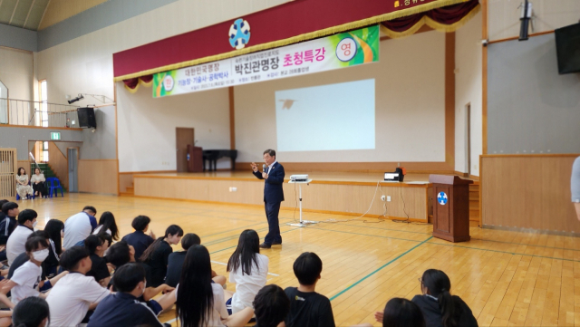 (사)대한민국명장회 박진관 부산 지회장은 최근 모교인 경남 김해 장유중학교의 초청으로 재학생들을 대상으로 숙련 기술 장려 직업 진로 지도 특강을 했다.