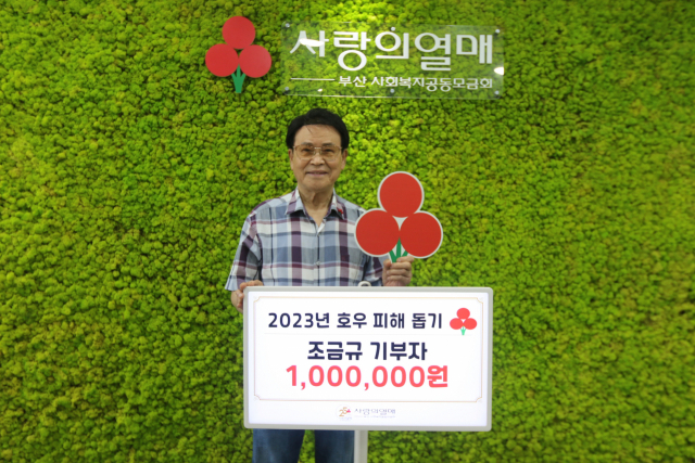 부산 서구 토성동에서 오랫동안 이발업을 하던 조금규(39년생) 씨는 21일 최근에 발생한 수해 피해 주민을 돕기 위해 성금 100만 원을 부산사회복지공동모금회(회장 최금식, 부산사랑의열매)에 전달했다.