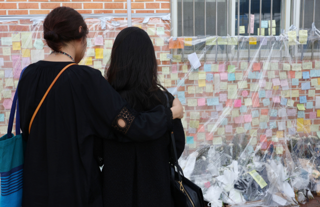 23일 서울 서초구의 한 초등학교에서 극단적 선택을 한 교사를 추모하는 추모객들의 발길이 이어지고 있다. 연합뉴스