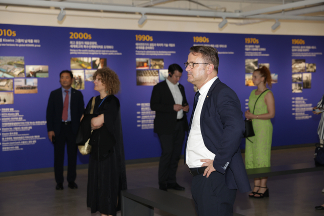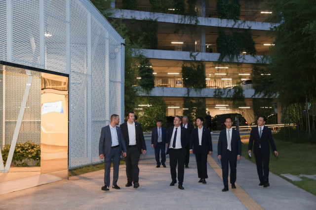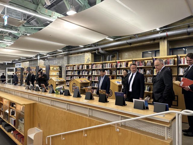 룩셈부르크 자비엘 베텔(오른쪽에서 세 번째) 총리 일행이 26일 오후 F1963 도서관을 돌아보고 있다. 김은영 선임기자