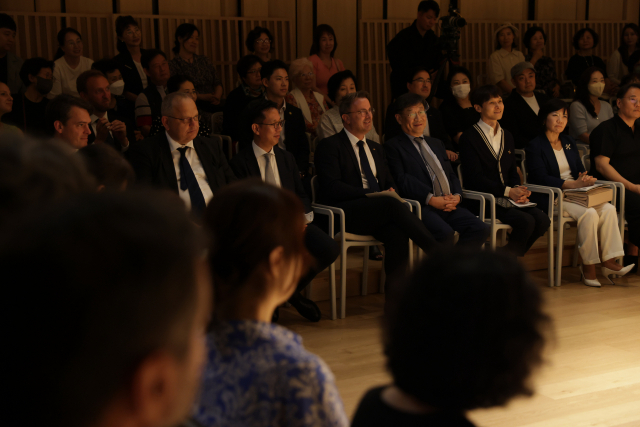 26일 오후 부산 수영구 금난새 뮤직센터에서 열린 음악회를 관람 중인 룩셈부르크 자비에 베텔(가운데줄 왼쪽에서 네 번째) 총리 일행과 관객들. F1963 제공
