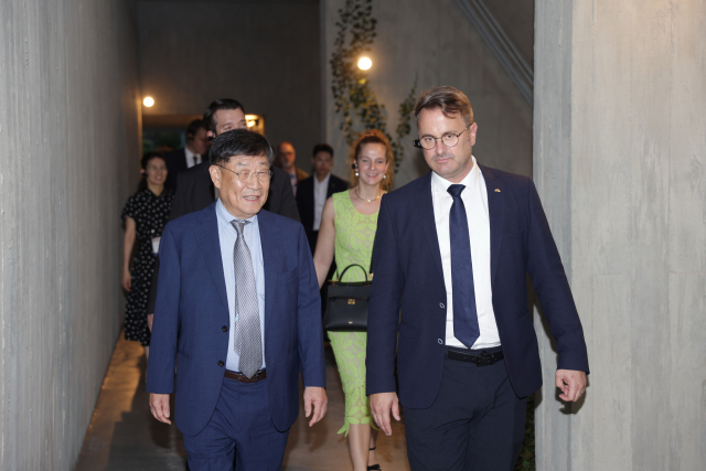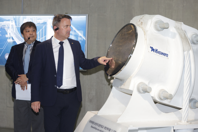 26일 오후 부산 수영구 고려제강기념관을 방문한 룩셈부르크 자비에 베텔(오른쪽) 총리. F1963 제공