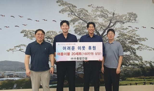 주촌면 행정복지센터에서는 27일 주촌면 소재 ㈜수종합건설에서 170만원 상당의 여름 이불 20세트를 기탁했다고 밝혔다.