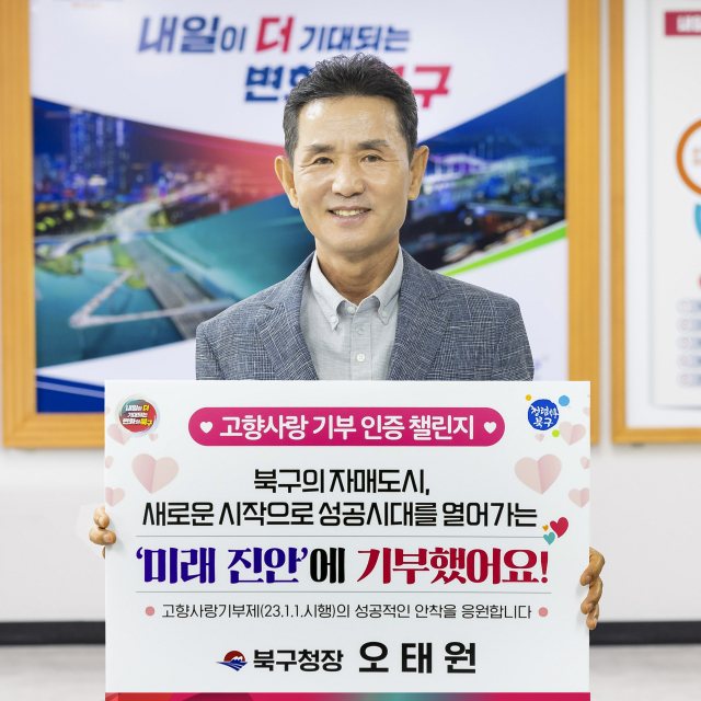 오태원 부산 북구청장은 지난 28일 ‘고향사랑기부제’의 성공적인 안착 및 기부 문화 확산을 위해 고향사랑기부 인증 챌린지에 동참했다.