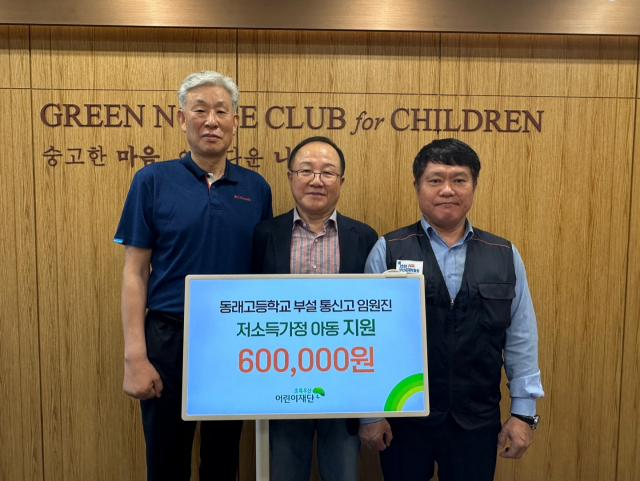 동래고등학교 부설 통신고등학교 임원진 일동(김상윤 회장)은 초록우산 어린이재단(부산지역본부장 노희헌)에 부산지역 저소득가정 아동 학업 지원금을 전달했다.