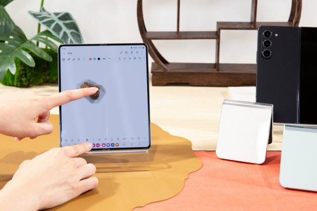 삼성전자 ‘갤럭시 Z 폴드5’의 두 손 드래그 앤 드롭 기능 사용 모습. 삼성전자 제공