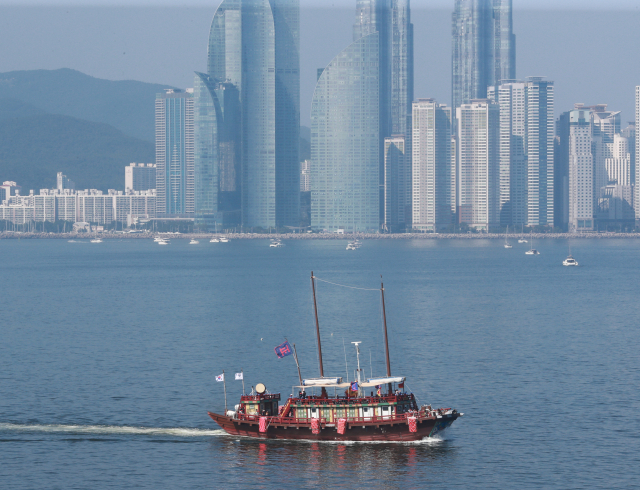 조선통신사선(재현선)이 8월 1일 조선통신사 12차 사행 이후 212년 만에 일본으로 떠난다. 사진은 지난달 29일 재현선이 부산 앞바다에서 시범 출항하는 모습. 연합뉴스