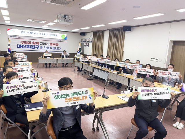 창원시가 인구 100만 명 사수에 사활을 걸고 있다. 마산회원구청 결의대회. 창원시 제공