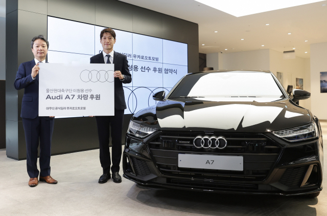 아우디 울산전시장에서 열린 홍보대사 협약식에는 유카로오토모빌 김문경 아우디세일즈본부장(전무)과 울산현대축구단 이청용선수가 참석한 가운데 진행됐다. 유카로오토모빌은 홍보대사 이청용 선수에게 고품격 럭셔리 세단 ‘아우디 A7 55 TFSI 콰트로 프리미엄’ 모델을 1년간 후원하기로 했다.