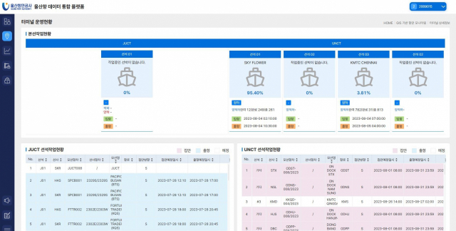 울산항 데이터 통합 플랫폼-터미널 운영 현황. 해수부 제공