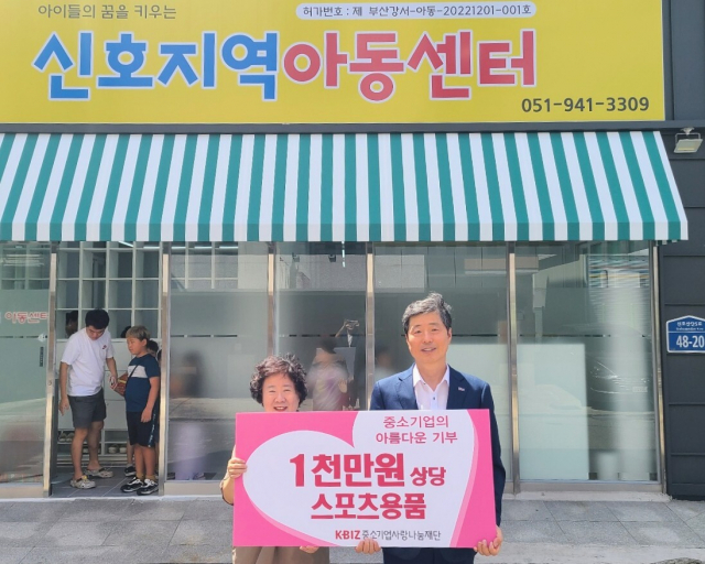 중소기업중앙회 부산울산지역본부(부산울산회장 허현도)는 지난 8일 부산시 강서구 신호지역아동센터(센터장 안경희)를 방문해 부산 32개소 아동센터 아동들이 사용할 스포츠용품을 전달했다고 밝혔다.