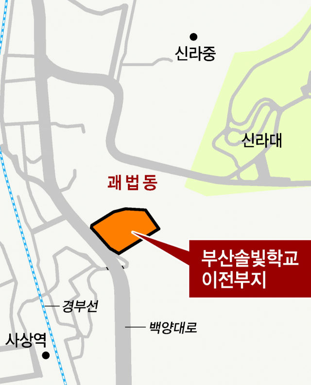 부산시교육청은 8일 "사상구 부산솔빛학교 이전 개교를 당초 목표였던 오는 9월에 할 수 없게 됐다"고 밝혔다. 시교육청은 현재 2026년 초로 이전 시기를 추정한다.