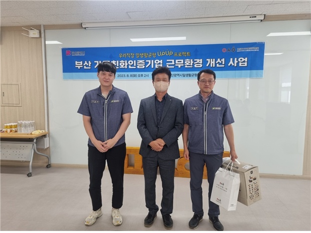 부산광역시일생활균형지원센터(센터장 변상준)는 최근 ‘우리 직장 일생활균형 UPUP 프로젝트’에 선정 된 가족친화인증기업에 직장 내 휴식공간 개선을 위한 커피 머신과 캡슐을 증정했다.