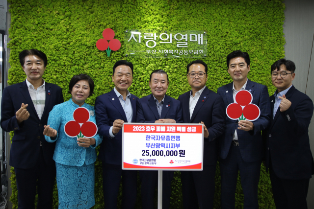 한국자유총연맹 부산시지부(회장 신한춘)는 지난 8일 부산사회복지공동모금회(회장 최금식·부산사랑의열매)를 방문해 폭우 피해로 고통 받는 경북 예천군 주민을 돕기 위한 성금 2500만 원을 전달했다.