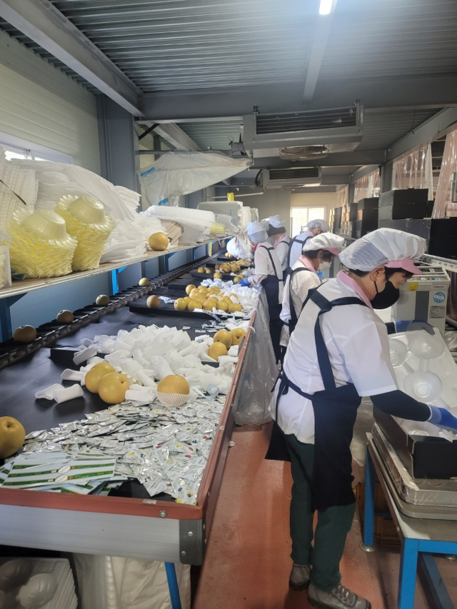 배 선별장 역시 수확된 배들을 포장하기 위해 눈코 뜰 새 없이 바쁜 일정을 보내고 있다. 김현우 기자