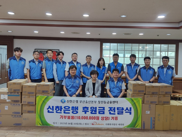 신한은행 부산울산본부(본부장 손홍배) 장전동 금융센터는 10일 코로나19로 생활에 어려움을 겪고 있는 노인요양시설인 부산 금정구 사회복지법인 애광원에 1000만 원 상당의 기부 물품을 전달했다.