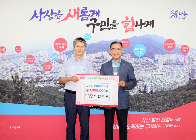 부산 사상구청(구청장 조병길)은 지난달 31일 선진B&T 김주용 대표가 고향사랑기부금 300만 원을 쾌척했다고 밝혔다.