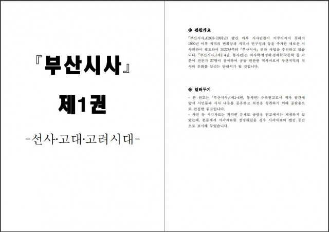 부산시는 선사~현대의 부산 역사를 집대성한 <부산시사> 통사편 총 4권의 수록 원고를 시민에게 공개한다. 시는 1991년에 완간한 <부산시사>(총 4권, 1989~1991년)를 30여 년 만에 증보하고자 2022년부터 새로운 편찬 사업에 착수했다. 지난해 통사편의 원고 집필을 마쳤고, 올해 책자 발간을 준비하고 있다.