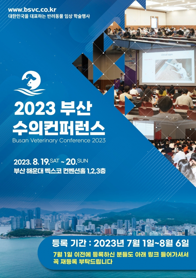 부산광역시수의사회(회장 이영락)가 오는 19일부터 20일까지 이틀간 해운대 벡스코 컨벤션홀에서 '2023 부산수의컨퍼런스'를 개최한다.