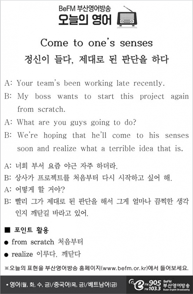 [영어] 정신이 들다, 제대로 된 판단을 하다