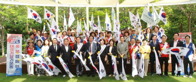 무더운 날씨 속에서도 배동석 남구지회 회장을 비롯한 회원 50여 명이 나라를 사랑하는 마음을 담아 주민들에게 태극기 300개를 무료 배부했다.