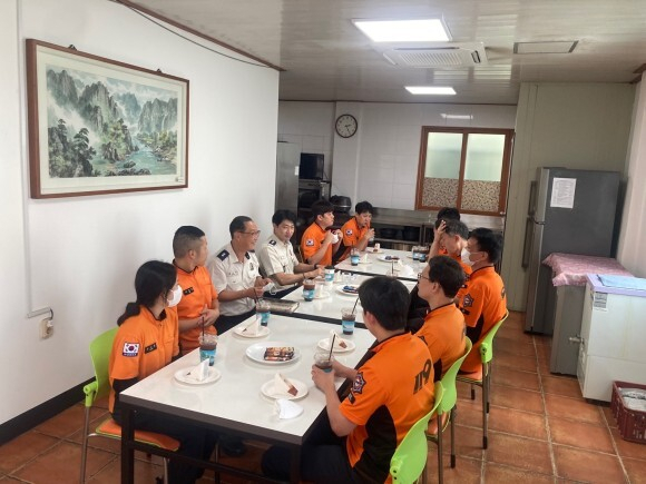 부산 항만소방서(서장 하길수)는 최근 태풍 등 자연재난 현장에서 비상근무를 한 직원들을 격려하기 위해 관할 119안전센터 등을 방문했다고 밝혔다.