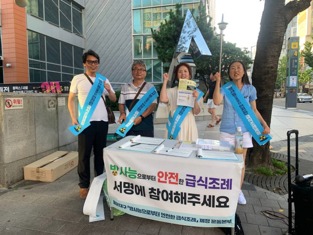 방사능으로부터 안전한 급식조례 제정 운동본부는 지난달부터 해운대구, 영도구 일대에서 거리 선전 등 홍보 활동을 벌이고 있다. 운동본부 제공