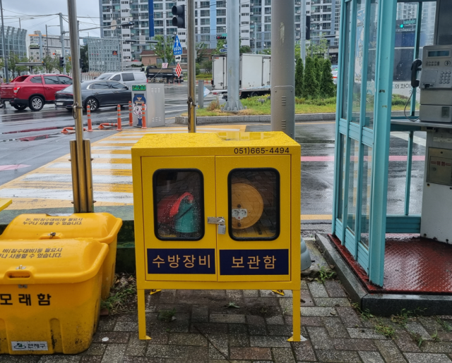 연제구(구청장 주석수)는 여름철 집중호우와 태풍에 따른 침수에 대비하고자 주요침수지역에 수방장비 보관함을 설치했다.